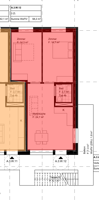 A.3.W.12: Drei-Zimmer-Wohnung in Haus A